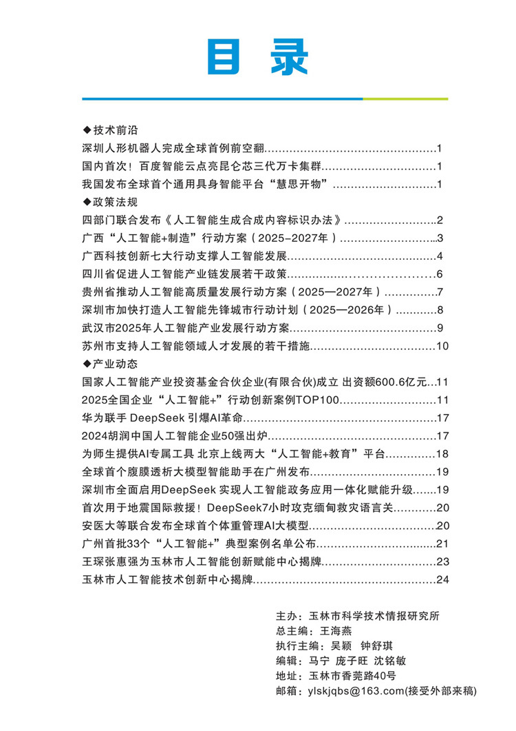 玉林产业科技情报2025年第一期(人工智能)