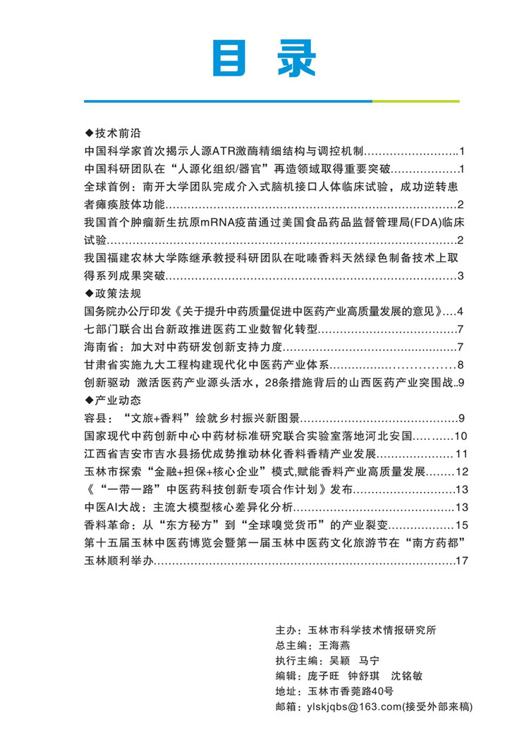 玉林产业科技情报2025年第二期(医药健康、香料)