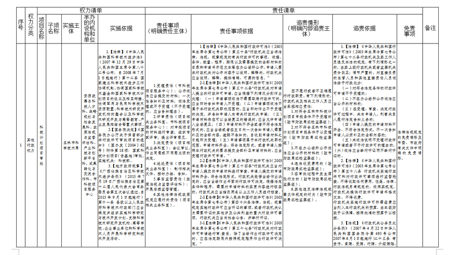 玉林市科学技术局权责清单(2024年)